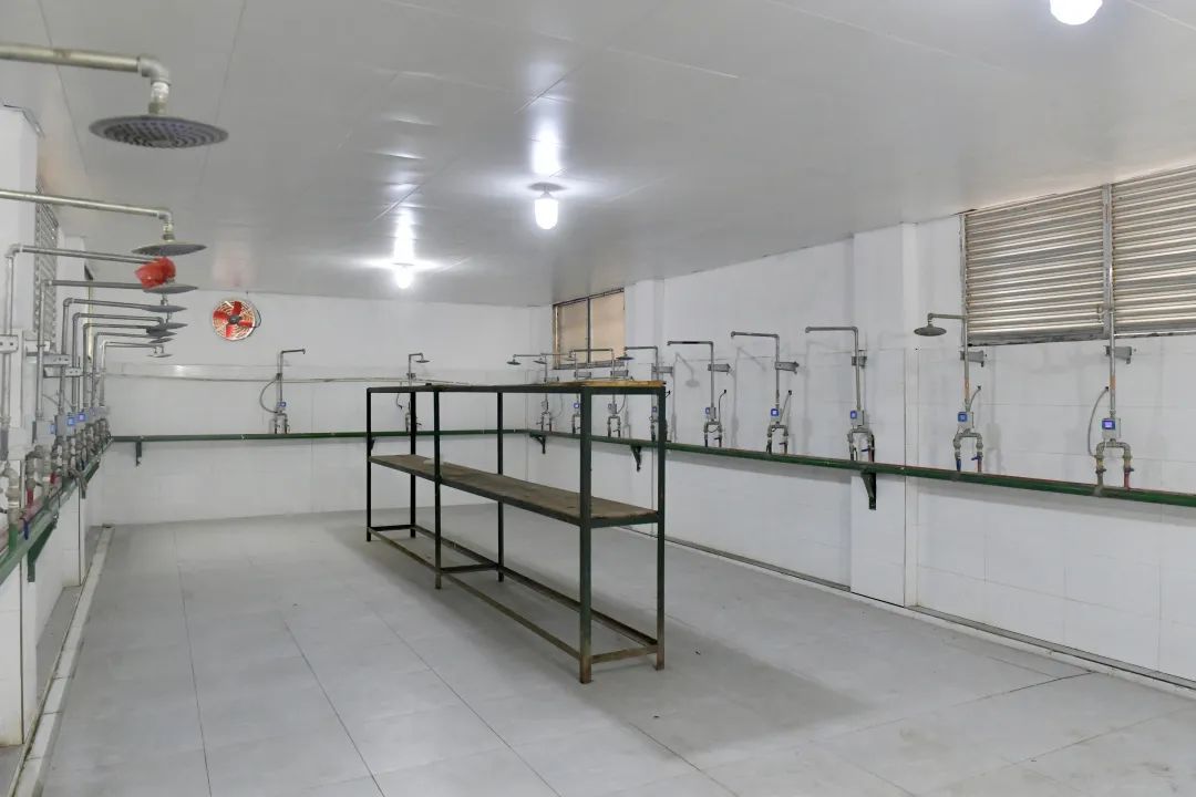 改造后的澡堂和更衣室焕然一新,浴室整洁有序、宽敞明亮,设置隔间和独立更衣室,铺设新的墙砖和防滑地砖,增设管道加压泵,安装喷淋设施。还购置了洗衣机、烘干机,让劳累一天的职工在享受优质洗浴环境的同时,彻底摆脱洗衣难、衣难干的问题。卫生间也重新划分区域,设置塑钢隔断,铺设墙砖地砖、增设感应便池,一改往日脏、乱、差的状况。